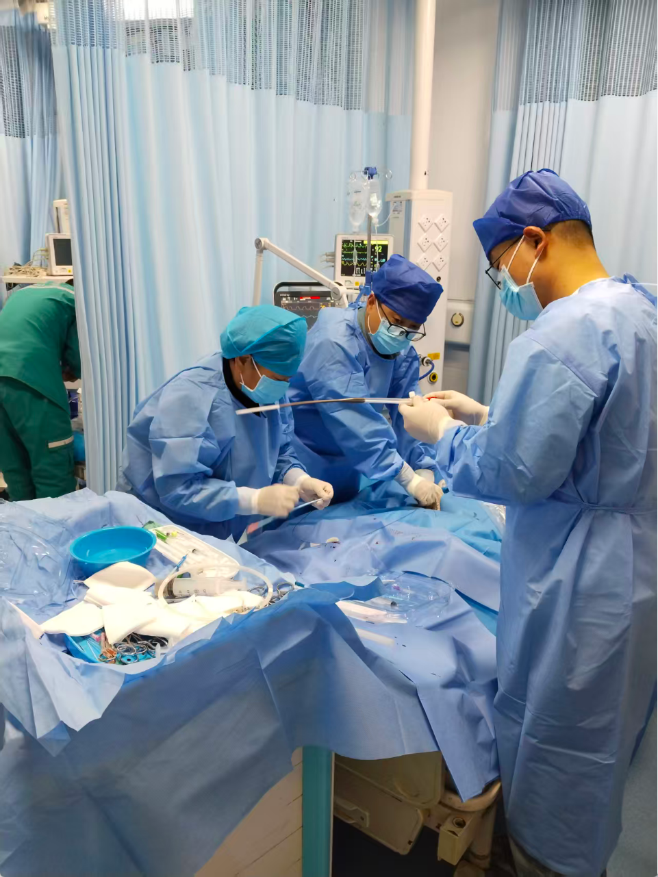 然而,险情并未就此解除。随后,患者反复出现室速、室颤等致命心律失常,生命再度悬于一线。“立即启动ECMO支持流程!”急诊科赵秋霞主任当机立断。ECOM支持流程启动后,商丘市第一人民医院ECMO团队迅速集结到位,在李景周主任与赵秋霞主任的协同指挥、精准操作下,成功为患者建立VA-ECMO(静脉-动脉体外膜肺氧合)支持。随着体外循环系统稳定运转,患者生命体征逐步趋于平稳,为后续治疗赢得关键窗口期。
