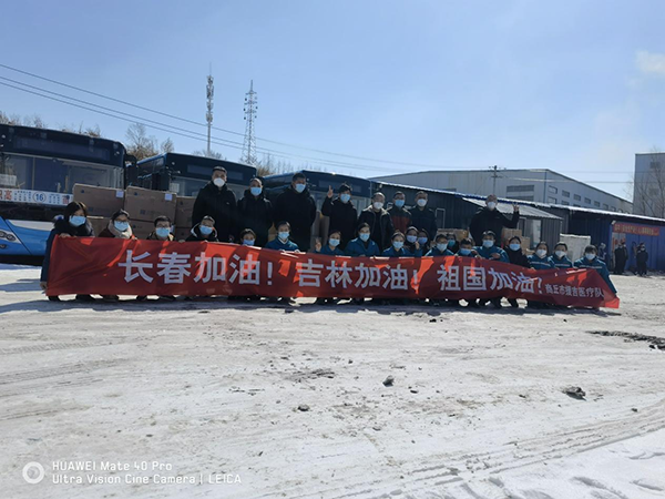 3月19号早上8点两辆物资车陆续到达长春市九台区,商丘市各县区医务人员组成的医疗队共45人,全部到位,参加物资搬运。